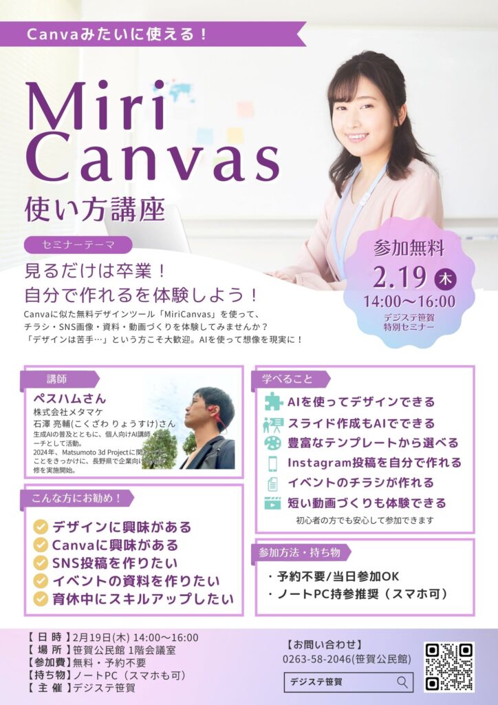 「MiriCanvasの使い方講座」 を開催します!